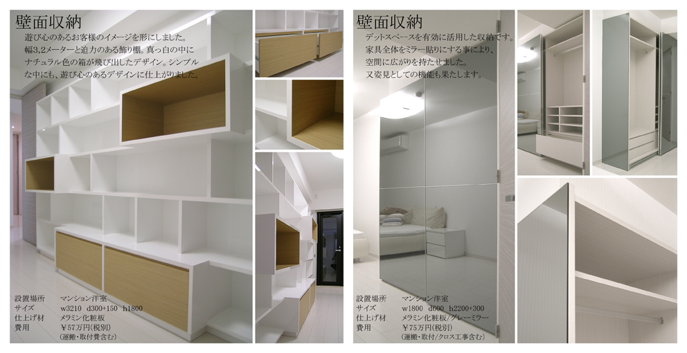 モデルルームの造作家具のような、見た目も美しく、使い勝手、機能面に優れたオーダー家具を、ご提案・製作致します。